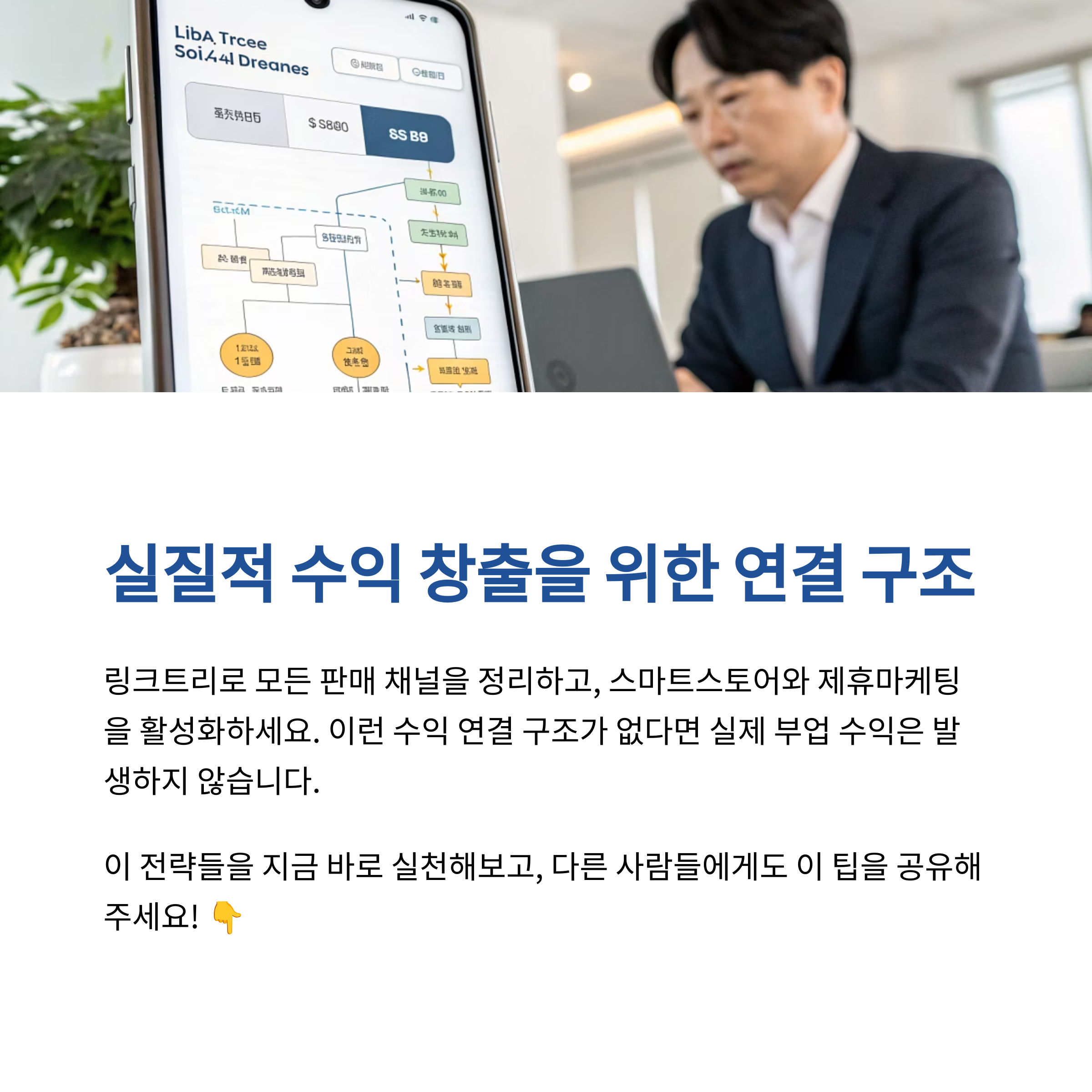 마지막은 수익 구조 설계입니다. 콘텐츠만 올려서는 수익이 발생하지 않으며, 반드시 구매나 행동을 유도할 ‘링크 구조’가 필요합니다. 예: 링크트리, 인스타스토어, 스마트스토어, 쿠팡파트너스, 크몽, 노션샵 등. 팔로워가 적어도 타깃이 정확하면 전환율이 높고, 반복 방문으로 재구매도 발생합니다. SNS는 브랜딩이 아니라, 판매를 위한 입구 채널로 생각해야 하며 매일 1개라도 ‘전략적으로 설계된 콘텐츠’가 올라가는 구조가 결국 자동화 수익 루틴으로 이어지게 됩니다.