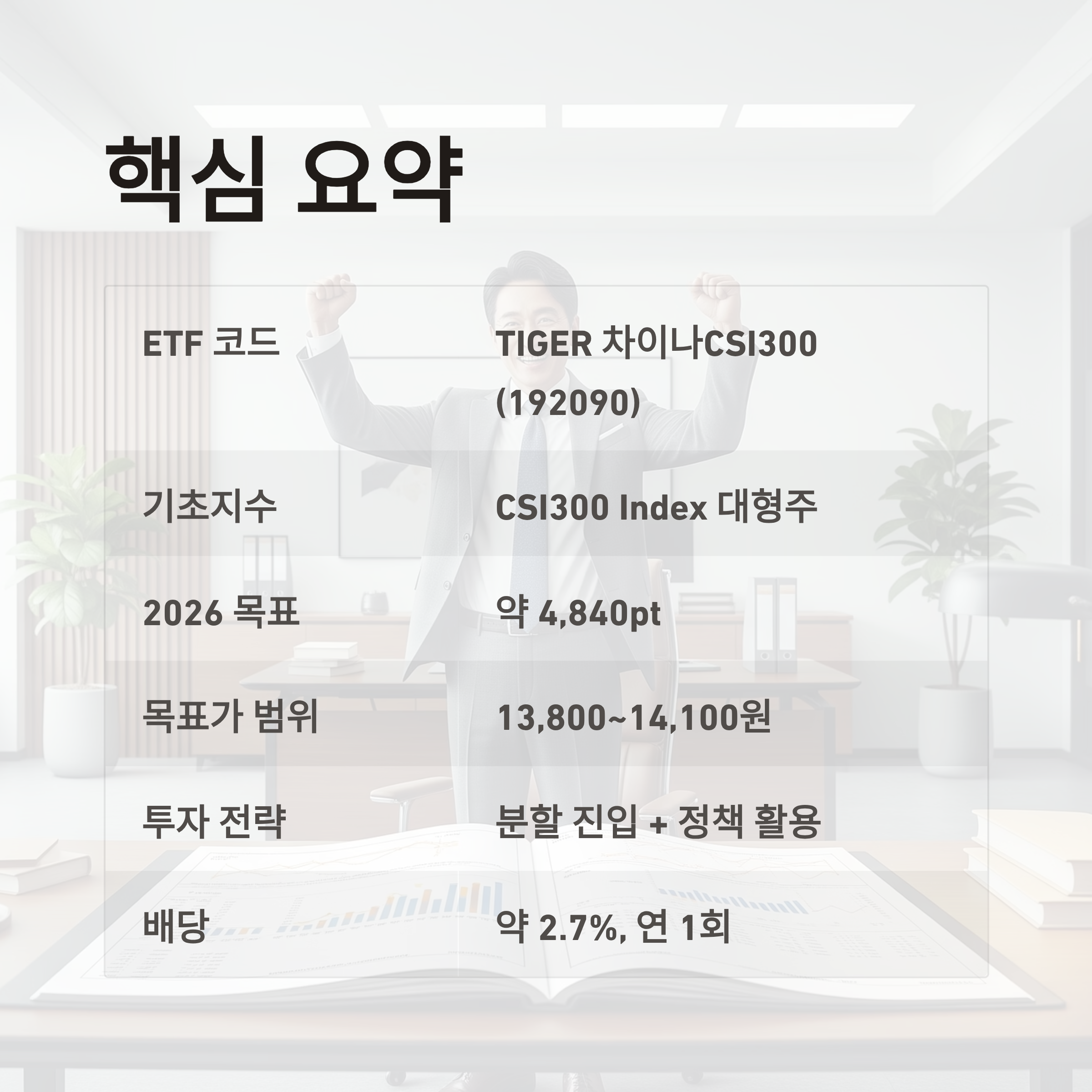 | ETF명 | TIGER 차이나CSI300 | 코드 192090, 미래에셋 운용 |