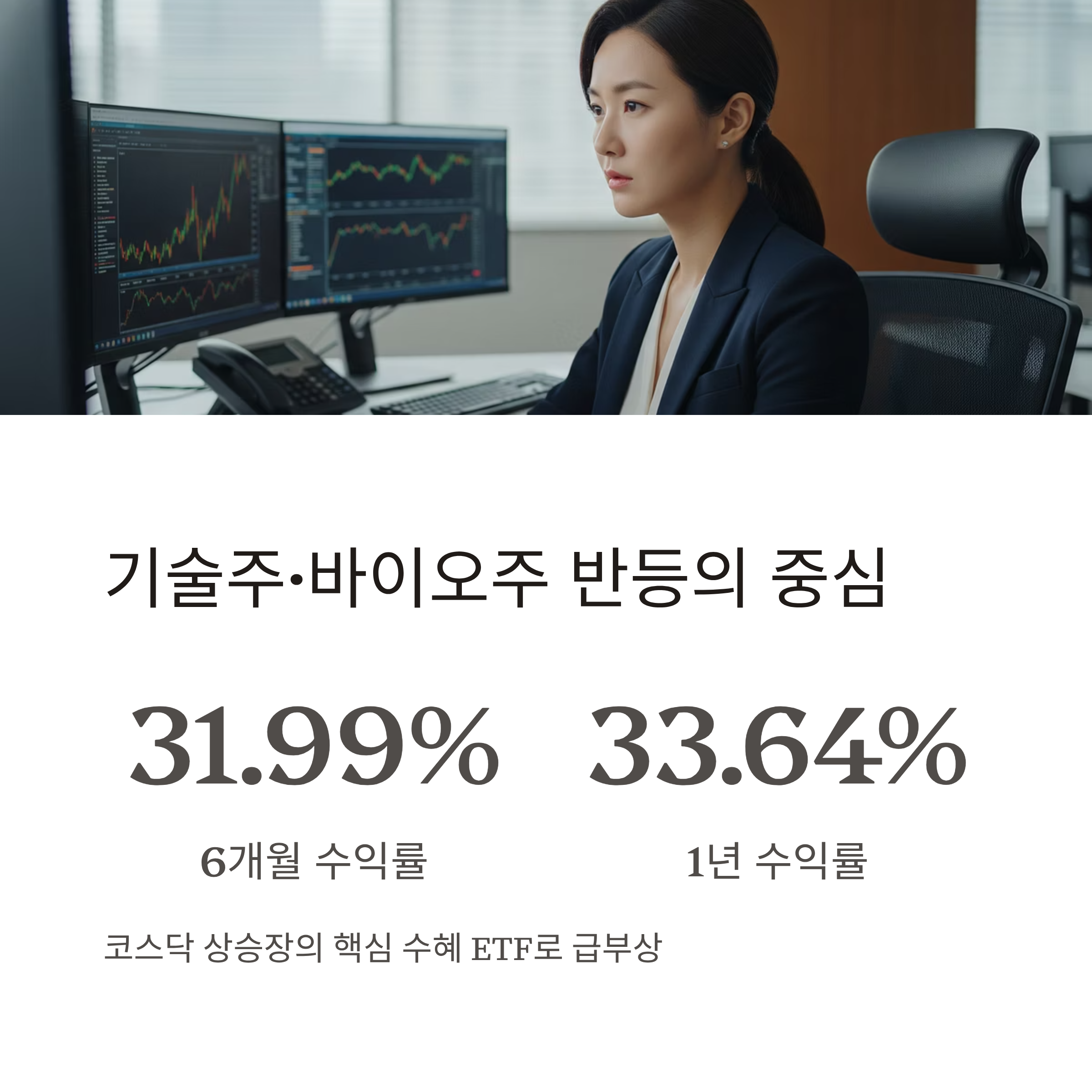 기술주와 바이오주의 반등 흐름이 다시 살아나면서, 코스닥 중심의 ETF 상품들이 시장에서 재조명되고 있습니다. 그 중심에는 TIGER 코스닥150 ETF(종목코드 232080)가 있습니다. 최근 수익률이 무려 6개월 기준 +31.99%, 1년 기준 +33.64%를 기록하며, 코스닥 상승장의 핵심 수혜자로 자리 잡고 있는데요. 이번 글에서는 이 ETF의 구조, 구성, 투자 포인트를 3단계로 분석해드립니다.