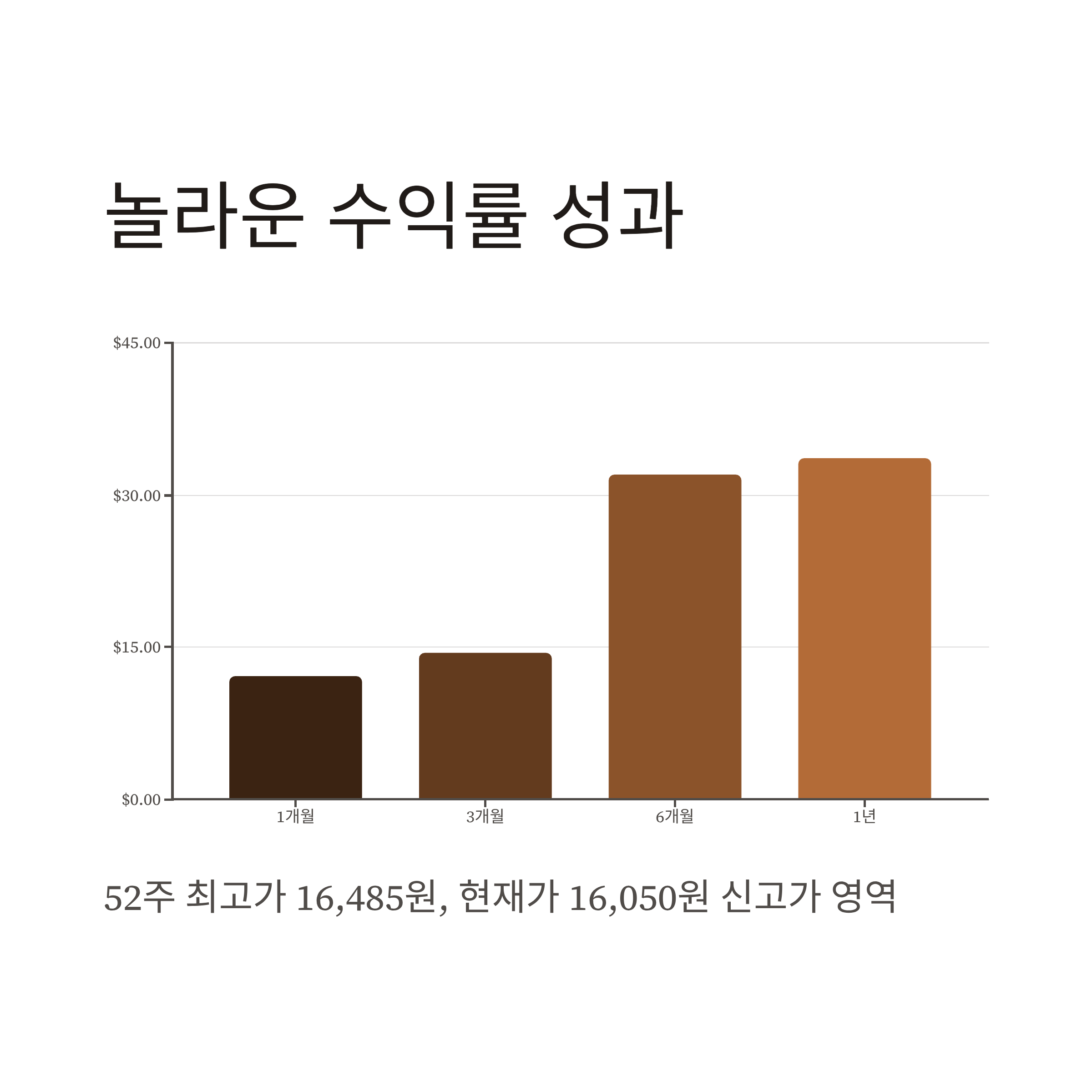 52주 최고가는 16,485원, 현재가는 16,050원으로 신고가 영역에서 움직이고 있습니다. 이는 최근의 기술주 회복 + 투자심리 개선 흐름이 ETF 성과로 그대로 이어졌다는 증거입니다.